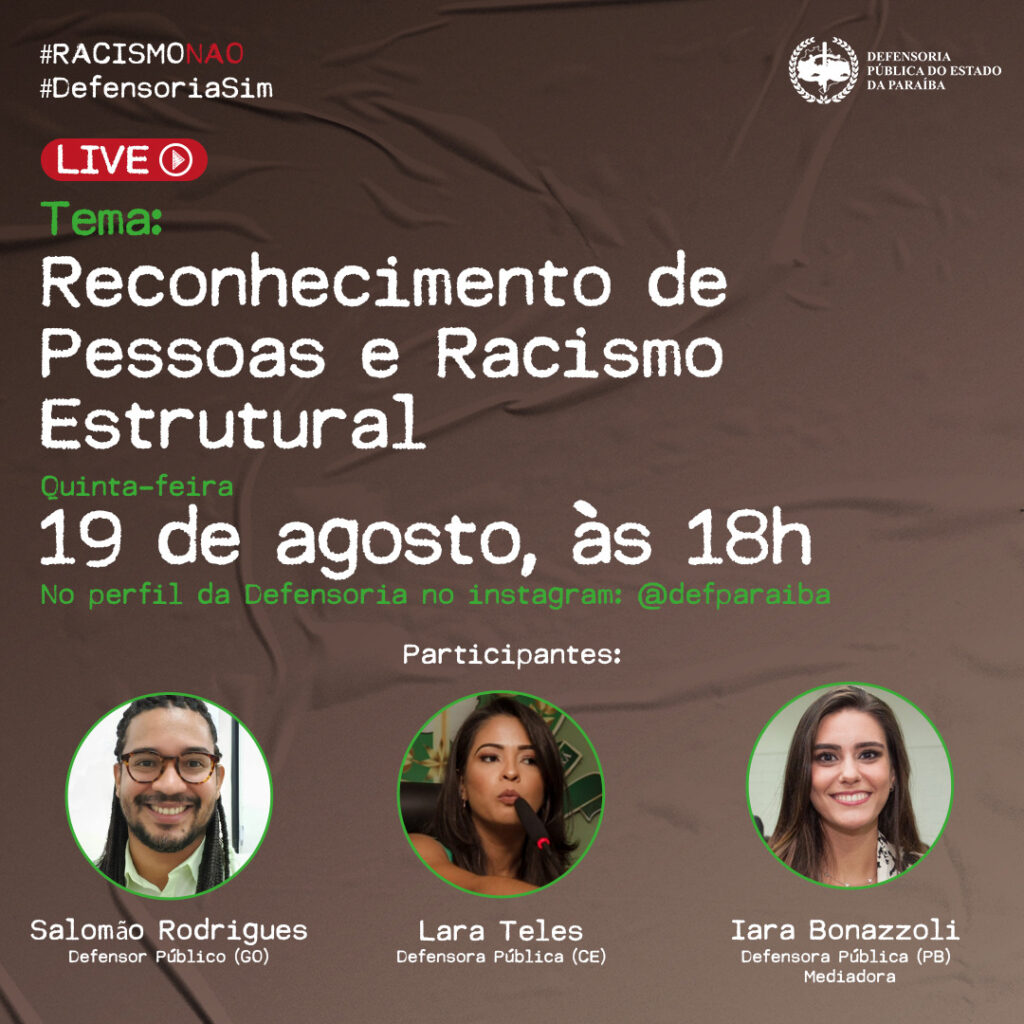 O racismo estrutural evidenciado em processos penais que se valem do reconhecimento de pessoas é o tema da próxima live realizada pela Defensoria Pública do Estado da Paraíba (DPE-PB) no […]