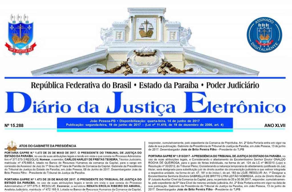 Por: Ascom-DPPB – Publicado em: 19.06.2017 O Diário da Justiça Eletrônico trouxe, nesta segunda-feira (19), a nomeação de 19 defensores públicos aprovados no concurso realizado pela Defensoria Pública da Paraíba […]